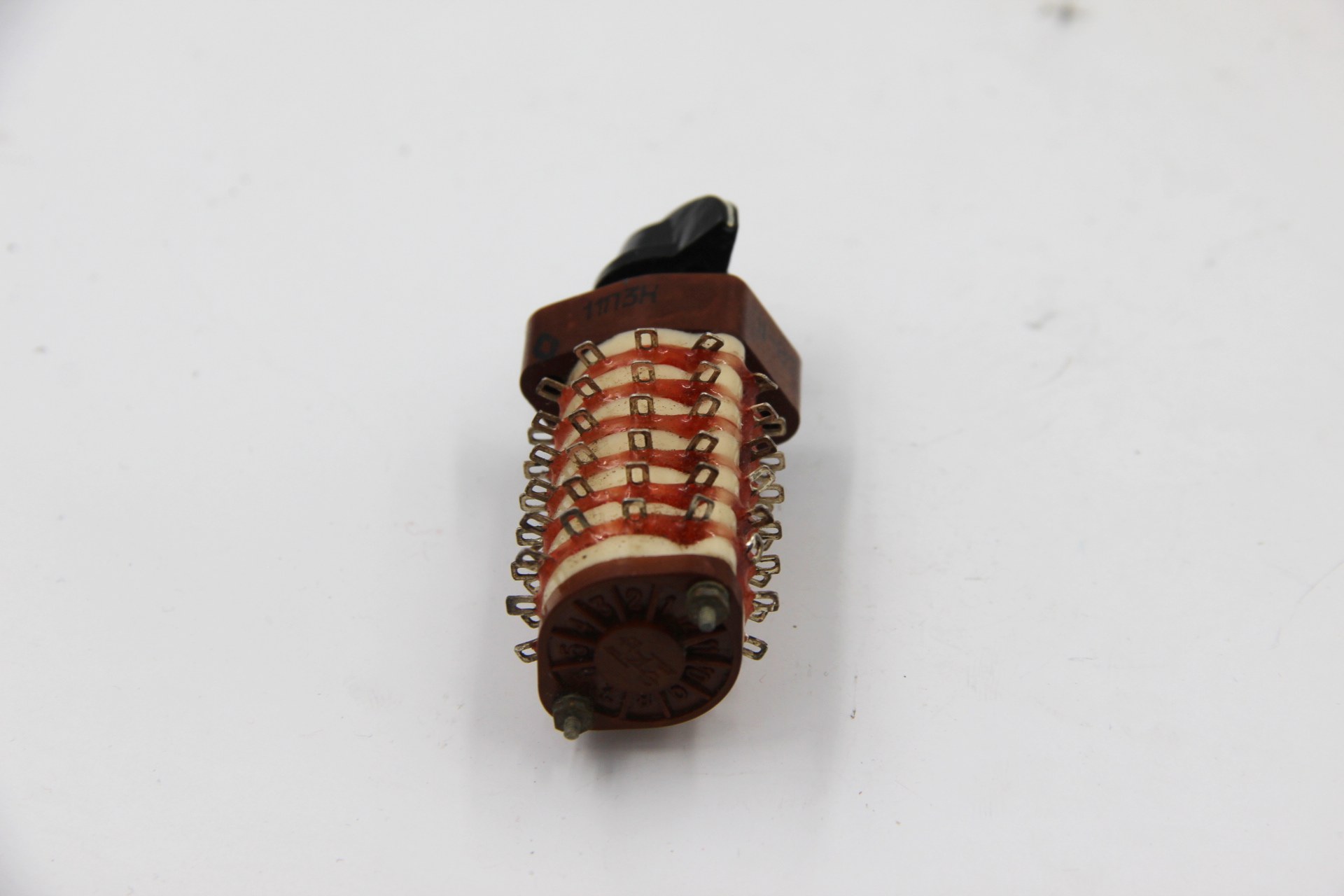 П2Г3 11П3Н переключатель галетный высокочастотный гетинаксо-карболитовый, поворотный роторного типа,применяется для коммутации цепей постоянного и переменного тока в радиоэлектронной аппаратуре. Переключатели крепятся путем фиксации оси в отверстии панели с помощью резьбы оси и гайки переключателя.