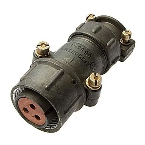 2РТ20П3ЭШ7-А соединитель цилиндрический низкочастотный предназначен для работы в электрических цепях постоянного и переменного токов частотой до 3 МГц при напряжении до 700 В.