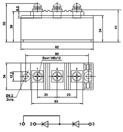 Также у силового модуля МДД-160-12 тепло от элементов отводится через керамический изолятор и металлическое основание.